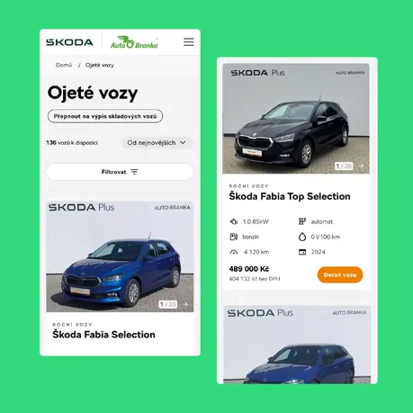 We built a robust multi-site solution based on Kentico MVC with cloud hosting in Microsoft Azure. We ensured secure integration with eight Škoda Auto and third-party systems, set up different levels of editorial rights, and prepared intuitive content management across portals. Thanks to the system’s flexible architecture, dealers can easily manage car listings, bookings, and marketing campaigns, while the central platform ensures a consistent customer experience.
